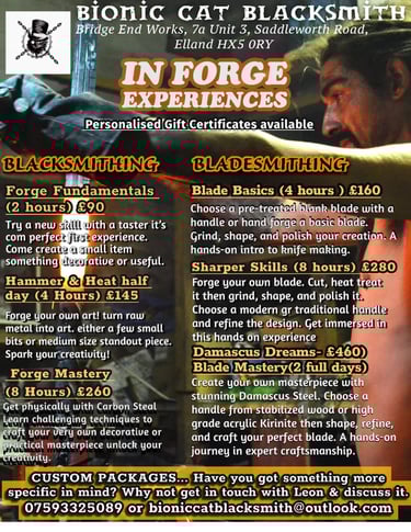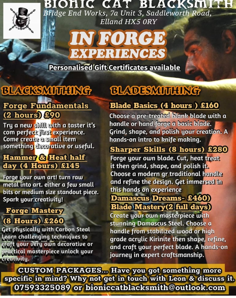 Here at Bionic Cat Blacksmiths, I specialise in bespoke metalwork, offering everything from swords to sculptures, art knives to tent pegs, all handcrafted with passion and precision for diverse clientele. Explore our unique creations today!